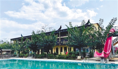 民宿内,泳池清澈见底,三角梅与芭蕉倒映水中,摇曳生姿,客房、餐厅、茶室配套齐全。若不是有人提起,不会有人想到,眼前焕然一新的楼宇,曾是一所闲置已久的破旧乡村小学。