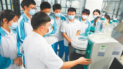 2月23日,海南中学高一学生参观国家城市供水水质监测网海口监测站实验室。这是该校推行的职场体验课程,旨在让学生走进真实职场,进行深入体验。本报记者 张茂 摄