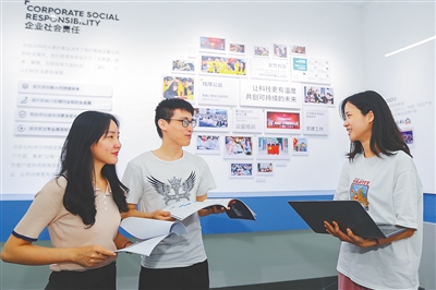 在海南自由贸易港生态软件园,企业员工们在交流业务。王将就 摄