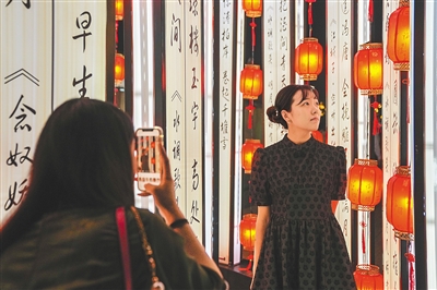 游客在诗酒趁年华游园会现场拍照打卡。武昊 摄