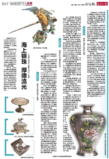 文/海南日报记者 刘晓惠 实习生 王栩瑶银器的历史几乎与世界文明史同步,它既是社会经济文化发展的产物,也是人们思想意识、审美情感的载体。