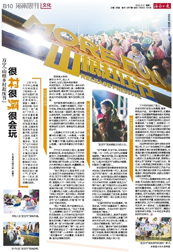 “空气清新,村庄干净,田地规划不错,一片一片的,这个农村让你看着很新鲜。”“散步在村里,可以感受到海南浓郁的乡村景色。”2月19日下午3时,“山根乡村赶压节”如期拉开帷幕,村里来了大量的游人。