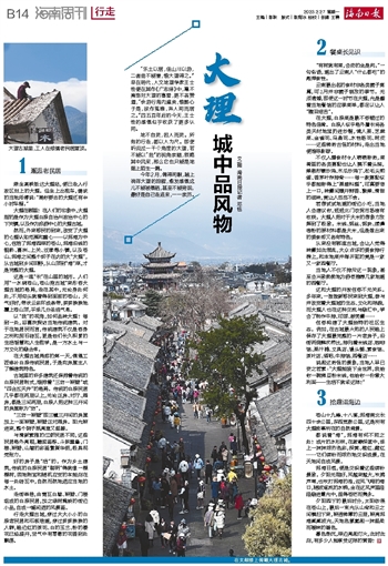文\图 海南日报记者 邓钰“乐土以居,佳山川以游,二者尝不能兼,惟大理得之。”早在明代,人文地理学家王士性便在其作《广志绎》中,毫不掩饰对大理的喜爱,更不吝赞道,“余游行海内遍矣,惟醉心于是,欲作菟裘,弃人间而居之。”四五百年后的今天,王士性的感慨似乎收获了更多认同。