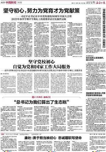 “按照总书记要求,在培养造就堪当民族复兴重任的执政骨干队伍上积极作为,这是我们义不容辞的责任。”湖南省委党校(湖南行政学院)分管日常工作的副校长(副院长)赵凯明说,围绕中心、服务大局是践行党校初心的必然要求,湖南省委党校将持续着眼国之大者,坚持务实做学问、做务实学问,为服务高质量发展、推进高效能治理提供源源不断的智力支撑。