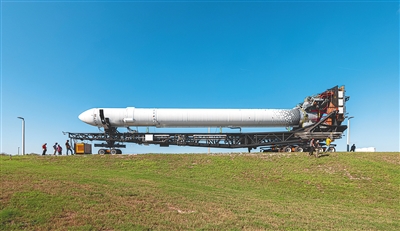 图为在美国佛罗里达州卡纳维拉尔角太空军基地拍摄的“人族一号”火箭。 新华社发