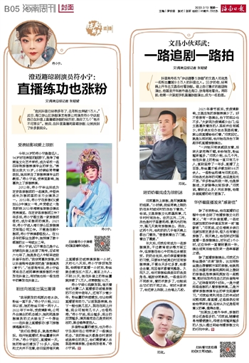 文\海南日报记者 张期望抖音账号名为“杂谈趣事S琼剧”的文昌人邓武是一名粉丝量超9.8万人的抖音达人。33岁的他,经常晚上开车去文昌各村看琼剧。碰上自己喜欢的剧团有演出,他甚至开车跨市县去海口、琼海等地看戏。两年前,他第一次架起手机直播琼剧演出,成为一名拍客。