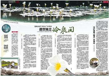 拂去传奇故事的色彩,作为国家Ⅱ级重点保护水生植物的水菜花像水中仙子,凌波而立,一簇又一簇集聚在一起,轻盈飘洒在羊山火山熔岩的冷泉间。湿地保护好了,不仅会成为生物多样性的聚集地,还会成为一道靓丽景观。