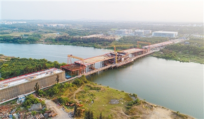 三月十四日,俯瞰中交二航局承建的博鳌乐城大桥项目。 本报记者 袁琛 摄