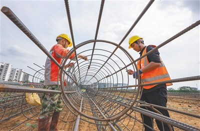 3月20日,在东湖高新海口生物城项目建设现场,工人在绑扎钢筋。项目位于海口国家高新区美安生态科技新城,总占地面积154亩,总建筑面积15.78万平方米,总投资15亿元。