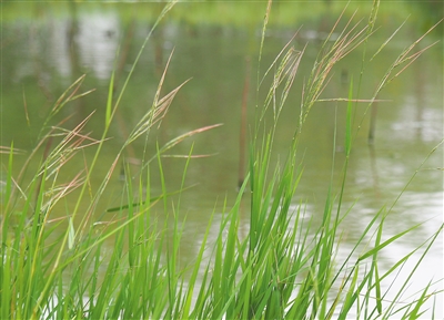但令卢刚欣喜的是,其它本土水生植物存活率都不错。特别是水菜花,不仅长势强健,且已在生态塘内自我繁殖。此外,邢氏水蕨、普通野稻在塘内生长也很迅速。这三种植物扎牢根后,也在不断提升这片生态塘的科普价值。