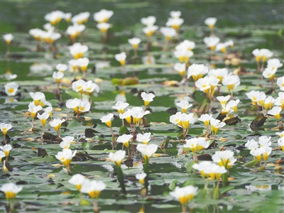 ■ 本报记者 张期望“别看这5亩水塘不起眼,但已有不少本土植物牢牢扎根了。”3月20日,在海口五源河国家湿地公园生态塘边,海口畓榃湿地研究所所长卢刚指着怒放的水菜花说,当初引栽的包括水菜花等30种本地水生植物,共有20种在生态塘内存活,其中11种是治理湿地的“本地高手”。