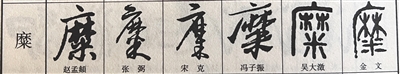 海南话中“饭”的本字为“糜”。上海辞书出版社《六体书法常用字字典》中“糜”字的六种写法。 陈耿 翻拍
