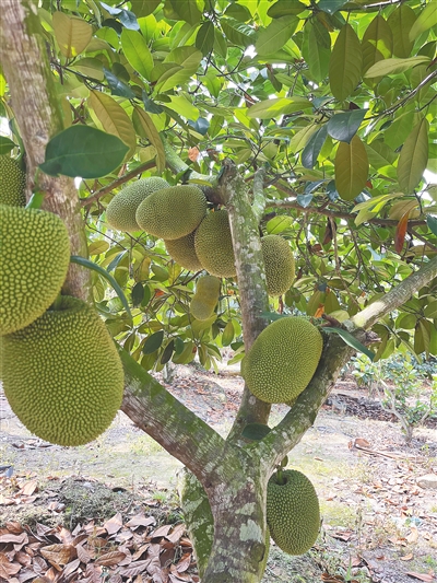 原产于马来西亚的榴莲蜜,有一股热带水果独有的芬芳,但没有榴莲浓烈的气味,又比菠萝蜜香甜糯。乐东志仲镇成功引种200亩榴莲蜜,单株产量超过200斤,连续几年冬春季节上市都供不应求。