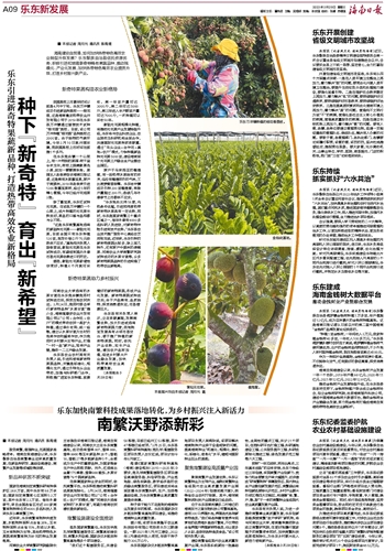 “乐东地处北纬18度,光热条件优越,引进同纬度热带新奇特水果具有一定优势,同时,乐东是国家南繁三个重点区域之一,每年冬春有4000多名科研人员进驻,对新奇特作物引进有技术优势。”乐东县农业技术推广服务中心高级农艺师张龙说,近年来,乐东引种的新奇特果蔬比较多,除上面几种外,还有原产中美洲的燕窝果、河南农业大学南繁研究院试种成功的水果甘蓝等,众多新奇特果蔬品种的引进构造了热带农业新格局。