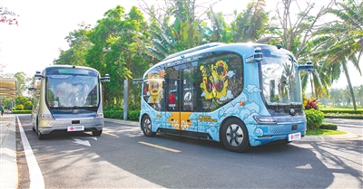 博鳌东屿岛智能网联汽车试点项目现场的无人驾驶巴士。丰收 摄