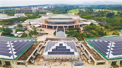 近日,施工人员在博鳌亚洲论坛大酒店安装光伏板。 蒙钟德 摄
