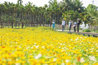 市民游客徜徉在琼海市博鳌镇南强村花海。阮琛 摄