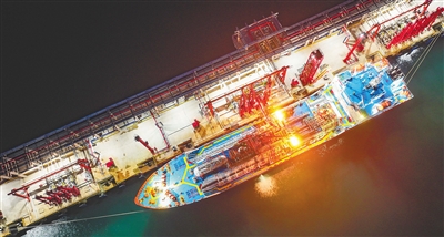 洋浦经济开发区海南炼化乙烯码头,轮装船夜间作业繁忙。 除注明外本版图片均由本报记者 陈元才 摄