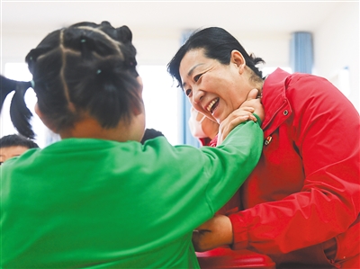 面对这群“星星的孩子”,康复训练的设置安排要更加科学。在星光特殊儿童服务中心康复训练室,陈志芳正拿着一张“车”的卡片,对着面前的一位孩子说“跟着我说,车”,孩子安静地看着她,吃力地对上口型,说出了“车”。每完成一组教学动作,陈志芳都会做出点赞手势,嘴里鼓励“真棒”,有时还会把孩子搂入怀中,亲昵地碰碰头。