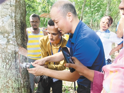 据了解,中国热科院研发的这款电动胶刀目前已在中国、马来西亚、印度尼西亚、斯里兰卡、越南、泰国等13个主要植胶国推广1万余把,占全球市场份额的七成左右,累计应用面积超过160万亩。这款电动胶刀的出现,还在“一带一路”沿线国家掀起了一股研发采胶机械的热潮。