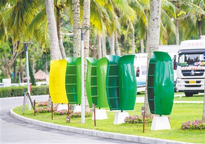 博鳌亚洲论坛国际会议中心草坪上的花朵风机。本报记者 袁琛 摄