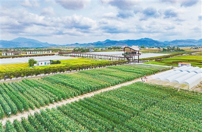 4月4日,航拍三亚市崖州区国家现代农业产业园农作物新品种新技术田间展示推广中心基地。 本版图片均由本报记者 王程龙 摄