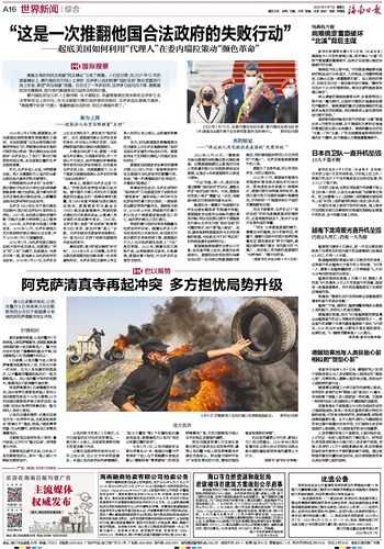 对特朗普和瓜伊多的“互动秀”,委内瑞拉卡拉沃沃大学社会科学院教授路易斯·德尔加罗说,美方意在利用瓜伊多搅乱委内瑞拉政局,以颠覆委总统马杜罗领导的合法政府。