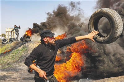 4月5日,巴勒斯坦人在加沙城以东焚烧轮胎抗议。 新华社/法新