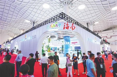 4月10日,第三届中国国际消费品博览会在海口开幕。众多观众前来海南馆参观。本报记者 王程龙 摄