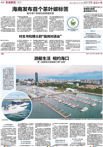 本报海口4月10日讯 (记者周晓梦 曾毓慧 通讯员李凯凯 羊顺玲)你喝过具有碳标签的茶叶吗?4月10日,海南日报记者从省生态环境厅获悉,“2023海南白沙茶产业团体标准发布会暨薄沙牌‘白沙绿茶’碳标签启用仪式”9日在白沙黎族自治县举行。活动现场正式发布海南首个茶叶碳标签——薄沙牌“白沙绿茶”碳标签。如何理解茶叶碳标签?据介绍,通过碳标签,消费者可清楚了解茶叶生产过程的绿色清洁程度,促进绿色产业链发展与农民增收致富。