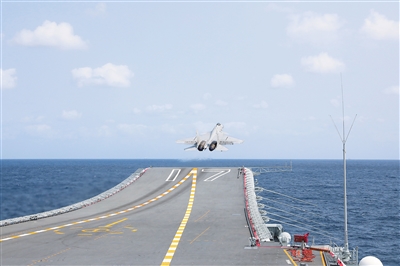 图为歼-15舰载机从海军山东舰起飞升空。新华社发(安妮 摄)