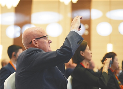 外籍嘉宾用手机记录现场。 本报记者 封烁 摄