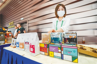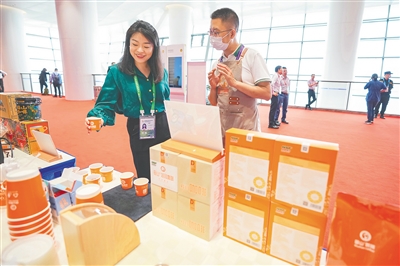 ① 4月12日,第三届消博会咖啡产业论坛现场展示的速溶咖啡。 本报记者 王程龙 摄
