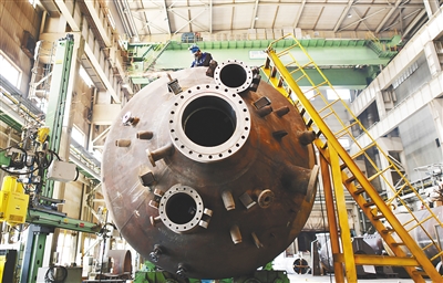 图为4月12日,工人在哈电集团哈尔滨锅炉厂有限责任公司车间内生产作业。新华社发