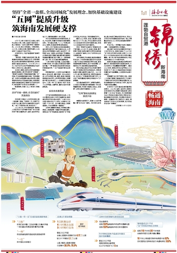 “要实施一批重大基础设施工程,提高基础设施网络化智能化水平,加密海南直达全球主要客源地的国际航线,加快构建现代基础设施体系。”2018年4月13日,习近平总书记在庆祝海南建省办经济特区30周年大会上提出要求。