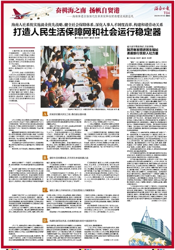 在高效做好统筹疫情防控和经济社会发展工作中,在自贸港建设由“顺利开局”到“蓬勃展开”到“进展明显”再到“蓬勃兴起”进程中,我省人社系统始终将保障和改善民生作为职责所在、使命所系、价值所依,致力于打造人民生活的保障网和社会运行的稳定器。