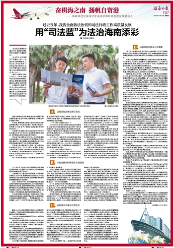 过去五年,法治海南写下浓重的一笔——全面依法治省统筹推进,行政立法工作扎实有效,行政执法改革不断深化,保安全护稳定能力全面加强,公共法律服务持续优化、深入人心……