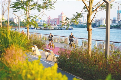 傍晚,市民在海口海甸溪北岸骑行。本报记者 张茂 摄