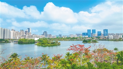 琼山区红城湖边秀美城市风景。本报记者 张茂 摄