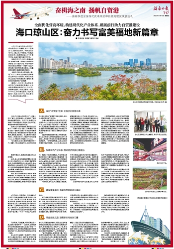 通过持续推进营商环境工作制度创新,琼山区已形成12项制度创新案例,其中5项被纳入具有海口特色亮点的营商环境制度创新案例。一项项创新制度,让琼山区良好的营商环境开花结果。2022年,琼山区全年新增经营主体6.51万余家,同比增长79%。营商环境持续向好,市级营商环境评估中位列全市第一;项目建设也得以高效推进,琼山区夏瑶二期棚改、海航豪庭二期项目等12个项目顺利竣工,南海之洲等26个项目实现开工,经济发展后劲显著增强。