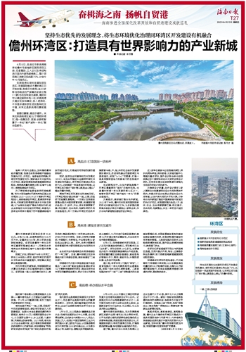 将生态环境优化治理同环湾区开发建设有机融合,使环湾区的蓝绿比例达到70%,达到国际一流宜居城市的标准,让环湾区成为践行“绿水青山就是金山银山”的儋州样板。