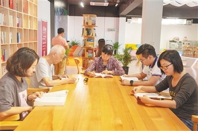 在琼海市新时代文明实践中心万泉河分中心,市民游客在阅读书籍。 本报记者 袁琛 摄