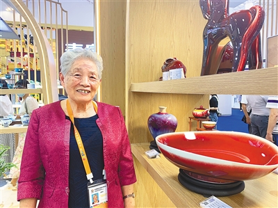 ■ 本报记者 计思佳“颜色釉又称‘人造宝石’,是我国非物质文化遗产中的瑰宝。这款郎窑红釉灯笼瓶造型端庄大方,通体散发着红宝石般的光芒,该类作品曾在2014年举办的APEC会议中陈列并被国家收藏。”4月13日,在第三届消博会8号馆的景德镇陶瓷精品馆内,一头银发、80多岁高龄的传统颜色釉烧制技艺国家级代表性传承人邓希平站得笔直,骄傲地为来往参观者介绍展出的颜色釉精品。