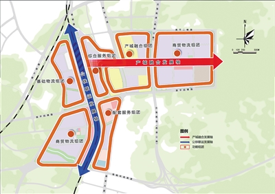五组团。基础物流组团、综合服务组团、配套服务组团、产城融合组团和商贸物流组团。