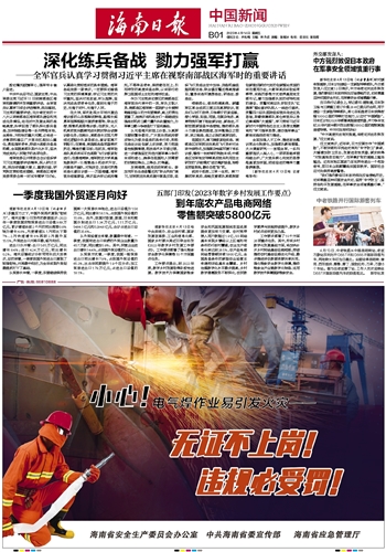 在大洋,首次赴西太平洋开展远海训练的山东舰犁波耕浪,副舰长闾勇军指挥舰艇开展损害管制、联合反潜、舰载机起降等训练;在浙东,无人机某团官兵圆满完成长航时联合侦察训练任务;在南沙,某部连长王廷凡带领巡逻艇分队紧急前出,查证驱离不明船只;在黄海,南昌舰各型武器梯次抗击,精准拦截目标;在胶东,海军陆战队某旅夜间平台起降飞行训练紧张进行;在渤海湾畔,海军航空大学某基地数架歼-15舰载战斗机依次升空,开展战术编队、对地突击、空战对抗等实战化课目训练……万里海疆,海军官兵倍感振奋,表示坚决牢记统帅嘱托,不辱神圣使命,保持箭在弦上、引而待发的高度戒备态势,以实际行动捍卫祖国领土主权和海洋权益。