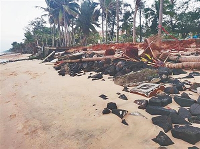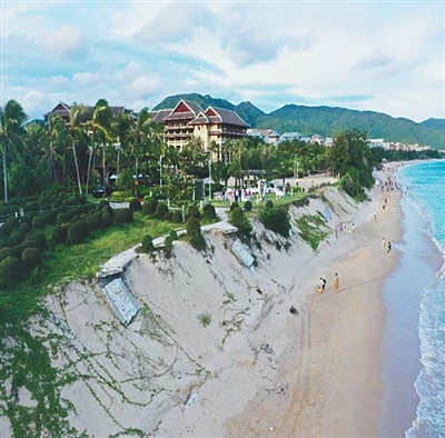 “海南岛的砂质海岸中,约50%岸段因侵蚀而后退。”来自国家海洋环境监测中心的副研究员文世勇,曾与同事们对海南海岸侵蚀现状与趋势进行评估,认为风暴潮、海平面上升、海岸采砂、不合理的海岸工程、海滩植被的破坏等,都是造成海岸侵蚀灾害的重要因素。