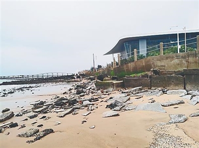 海水朝陆地“步步紧逼”,挤压的不仅是海岸带承载的旅游休闲空间,更直接威胁到沿岸居民生命财产安全。甚至在部分地区,危险已由潜在状态变为现实状态:在海口西海岸,部分沿海道路地基被掏空,出现塌方;在昌化江下游入海口处,泥沙淤积导致船舶搁浅、灯塔倒塌……