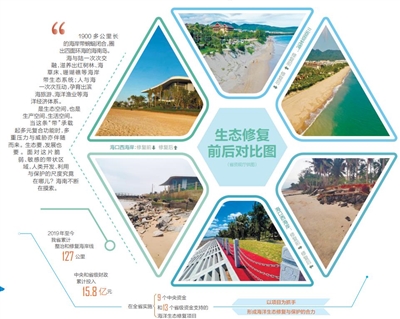 2019年至今,中央和省级财政累计投入15.8亿元,在全省实施9个中央资金和13个省级资金支持的海洋生态修复项目,以项目为抓手,形成海洋生态修复与保护的合力。