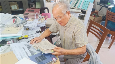周伟民查阅书籍。 海南日报记者 黎鹏 摄