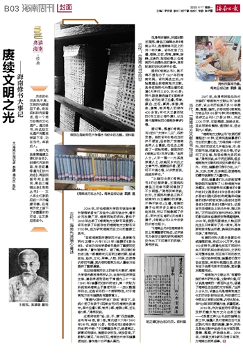 文\海南日报记者 黎鹏 通讯员 陈虹历史的长河奔流不息,文明的光辉绵延不绝,史志资料和先贤著述,是一个地方珍贵的文化遗产。通过修书,将这些文化遗产完整地保留下来,功在当代,泽被后人。
